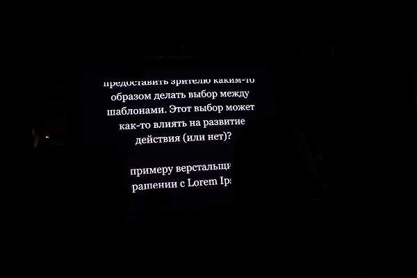 Михаил Дурненков, драматург, арт-директор фестиваля «Любимовка»: «Предложенная игра – следить за драматургией по интонациям, по игре догадываться о смыслах, довела моё сознание до того, что, когда был параграф Фёдорова, я ни слова не понял, потому что моё доверие потерялось настолько, что я думал: «Они ничего мне не сообщают, актёры как-то ровно говорят, я не понимаю, что у них за отношения». Даже когда началось обсуждение, я не понимал смысла слов, потому что слушал, что вы мне сообщаете интонацией. Это разрушение подключения к логосу очень любопытно».