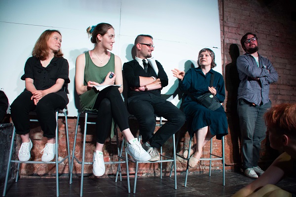Алёна Солнцева, театровед: «Когда вы писали реплики персонажей, то представляли себе героев, их отношения, сквозное действие, развитие конфликта? И довольны ли вы способом читки, предложенным режиссёром, который превратил всё в лингвистическую игру?»